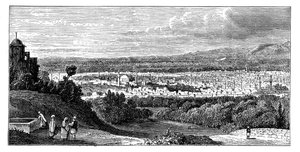stadt · himmel · abhang · reiten · mitfahrer · australien · ansicht · ozeanien · cityscape · victoria · position · jahrhundert · outing · melbourne · tag heraus · einfarbig · stich · 19. jahrhundert · schwarzes u. weiß · schwarzes und weiß · erhöhte ansicht · 19.jahrhundert · engraving · unknown · arial view · The Print Collector/Heritage Images |