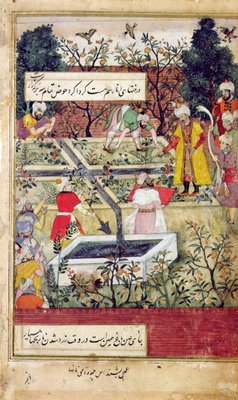 leute · mann · mann · männer · indien · fromm · indisch · garten · künste · anstrich · vogel · vögel · land · religion · kaiser · kunst · kerl · farbe · farbe · königlich · moslems · islam · islamisch · im garten arbeiten · moslems · position · jahrhundert · kontrollieren · überwachen · der iran · iranisch · abgabe · gärtner · kontrolle · mughal · lehre · überwachung · persisch · persien · 16. jahrhundert · sechzehntes jahrhundert · babur · indian miniature · unknown · garden of fidelity · bishan das · bishan · nanha · nanha · The Print Collector/Heritage Images
