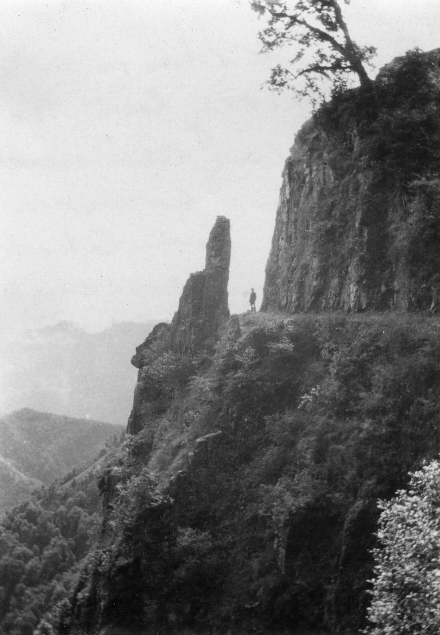 außen · leute · indien · indisch · berg · berge · land · geographie · skala · klippe · klippen · position · jahrhundert · konzept · draußen · eine person · einfarbig · schwarzes u. weiß · schwarzes und weiß · 1910s · 20. jahrhundert · amritsar · chakrata · kalsi · putlighar · uttaranchal · photograph · landscape · unknown · The Print Collector/Heritage Images |
