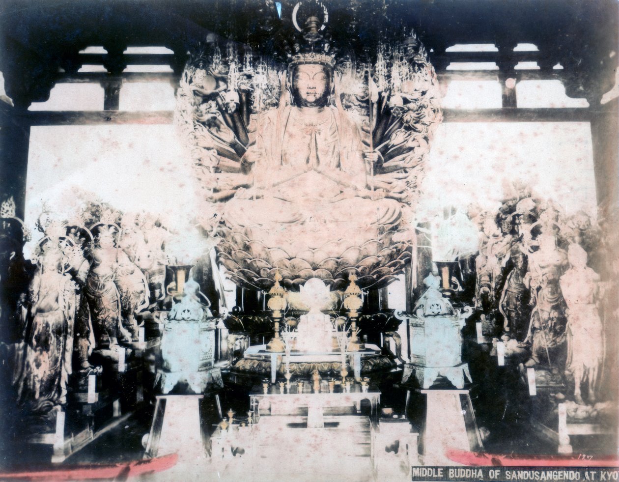 gebäude · gebäude · innen · fromm · architektur · land · religion · buddhismus · bügel · statue · buddha · farbe · farbe · japan · japanisch · kyoto · position · kinki · sanjusangendo · photograph · unknown · The Print Collector/Heritage Images |