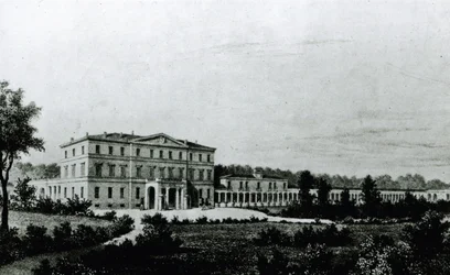 spielraum · außen · draußen · park · gebäude · gebäude · england · haus · architektur · künste · kunst · buch · britisch · villa · position · hertfordshire · jahrhundert · architektonisch · großbritannien · literatur · draußen · touristische anziehung · einfarbig · landhaus · 17. jahrhundert · prächtiges haus · 19. jahrhundert · schwarzes u. weiß · schwarzes und weiß · 19.jahrhundert · tourismus · photograph · landscape · unknown · moor park · beautiful britain · The Print Collector/Heritage Images |