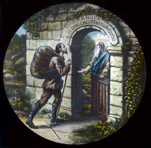 leute · mann · mann · männer · fromm · garten · gärten · künste · religion · form · kerl · schlaf · rest · schlafen · stillstehen · bank · bänke · müde · sitzplätze · christ · christentum · position · kreisförmig · jahrhundert · schlafend · literatur · konzept · rolle · belehrung · arbour · 1910s · 20. jahrhundert · allegory · unknown · glass · john · john bunyan · bunyan · religious tract society · church army · The Print Collector/Heritage Images |