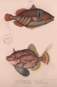 zwei · fische · künste · buch · sealife · farbe · farbe · braun · flosse · gegenüberliegend · richtung · abbildung · jahrhundert · alleinig · literatur · konzept · enzyklopädie · wasserleben · 19. jahrhundert · 19.jahrhundert · unknown · solea vulgaris · rhombus maximus · The Print Collector/Heritage Images |
