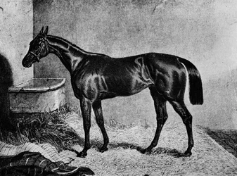 seitenansicht · tier · innen · zuhause · sport · tiere · pferde · pferd · künste · buch · britisch · profil · jahrhundert · großbritannien · rennen · nach innen · beständig · trophäe · pferd laufen · literatur · stallion · pferd rennen · einfarbig · thoroughbred · rennpferd · 19. jahrhundert · schwarzes u. weiß · schwarzes und weiß · 1910s · 20. jahrhundert · 19.jahrhundert · charles · george · james · horse-race · horse-racing · unknown · oates · kettledrum · british sports and sportsmen · doncaster cup · james cookson · cookson · charles towneley · towneley · george oates · The Print Collector/Heritage Images