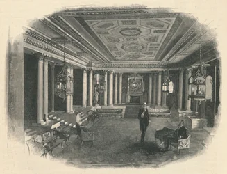 gebäude · gebäude · innen · architektur · britisch · marmor · palast · spalte · pfosten · pfosten · victorian · jahrhundert · großbritannien · innenarchitektur · buckingham palast · einfarbig · innendekoration · 19. jahrhundert · schwarzes u. weiß · schwarzes und weiß · 19.jahrhundert · engraving · unknown · robert · wilson · robert wilson · The Print Collector/Heritage Images