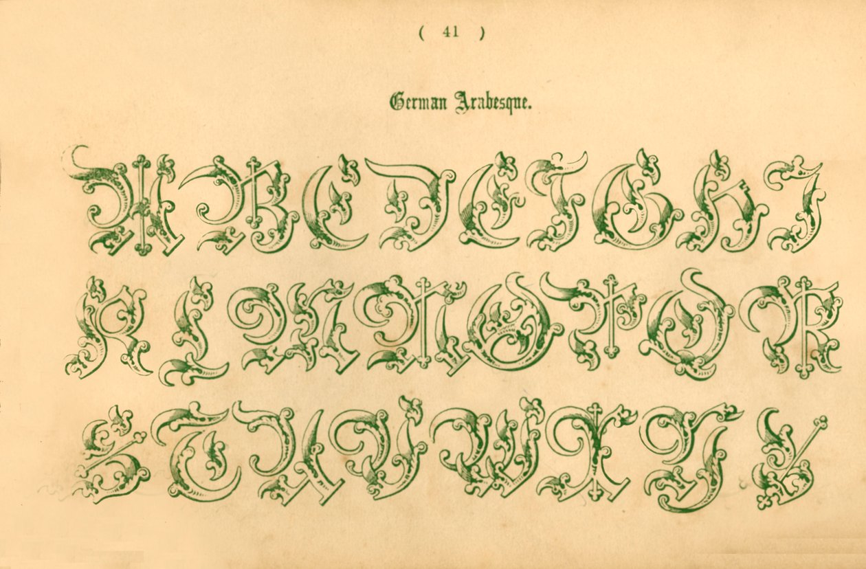 deutschland · deutsch · land · schreiben · grün · farbe · farbe · dekorativ · dekorativ · aufwendig · text · position · jahrhundert · alphabet · konzept · index · beschriftung · schriftkegel · 19. jahrhundert · arabeske · 19.jahrhundert · unknown · upper case · freeman gage delamotte · delamotte · freeman gage · The Print Collector/Heritage Images |