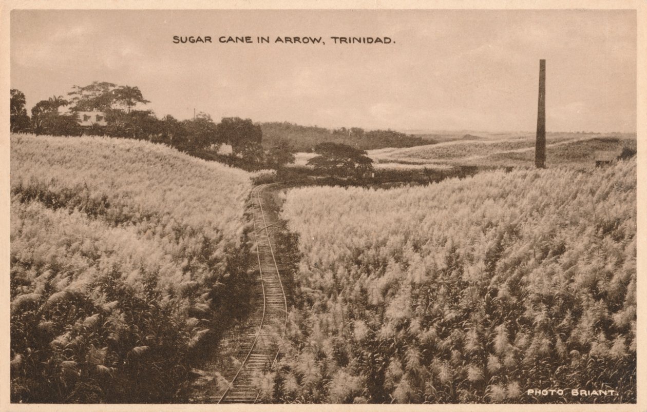 natur · außen · getreide · landwirtschaft · feld · bewirtschaften · schiene · schienen · betrieb · zucker · trinidad · plantage · ackerland · jahrhundert · trinidad und tobago · sepia · draußen · zuckerrohr · einfarbig · schwarzes u. weiß · schwarzes und weiß · zuckerrohr · 20. jahrhundert · trinidadian · photograph · postcard · unknown · davidson and todd ltd · The Print Collector/Heritage Images