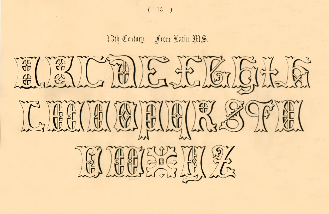 schreiben · dekorativ · aufwendig · mittelalterlich · text · jahrhundert · alphabet · konzept · index · manuskript · beschriftung · einfarbig · schriftkegel · 19. jahrhundert · schwarzes u. weiß · schwarzes und weiß · mittleres alter · 19.jahrhundert · dreizehntes jahrhundert · 13. jahrhundert · unknown · freeman gage delamotte · delamotte · freeman gage · The Print Collector/Heritage Images