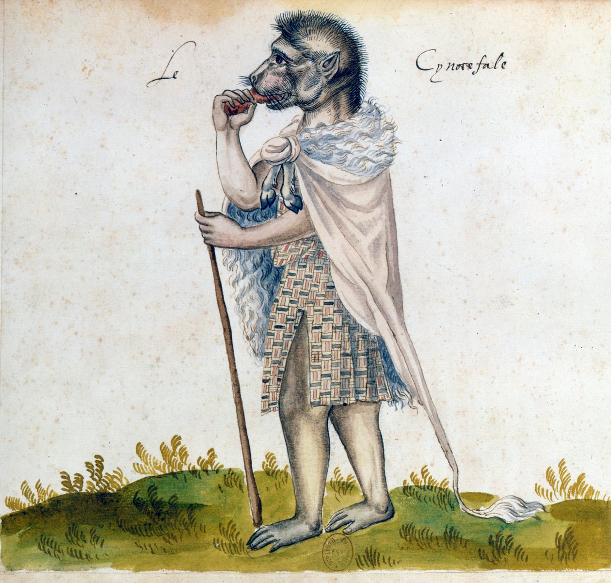 tier · kopf · land · französisch · frankreich · körper · hund · kleidung · füße · fuß · farbe · farbe · affe · essen · pavian · tatze · tatzen · mittelalterlich · kleid · position · jahrhundert · mythologie · mantel · mythisches geschöpf · mittelalterlich · mittleres alter · art media · cynocephalus · cynoscephalus · manuscript · unknown · Art Media/Heritage Images |