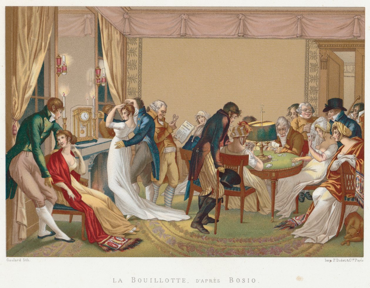 Damen und Herren spielen La Bouillotte, Frankreich, ca. 1804-1814(Ladies and gentlemen playing La Bouillotte, France, c1804-1814)Unbekannt |