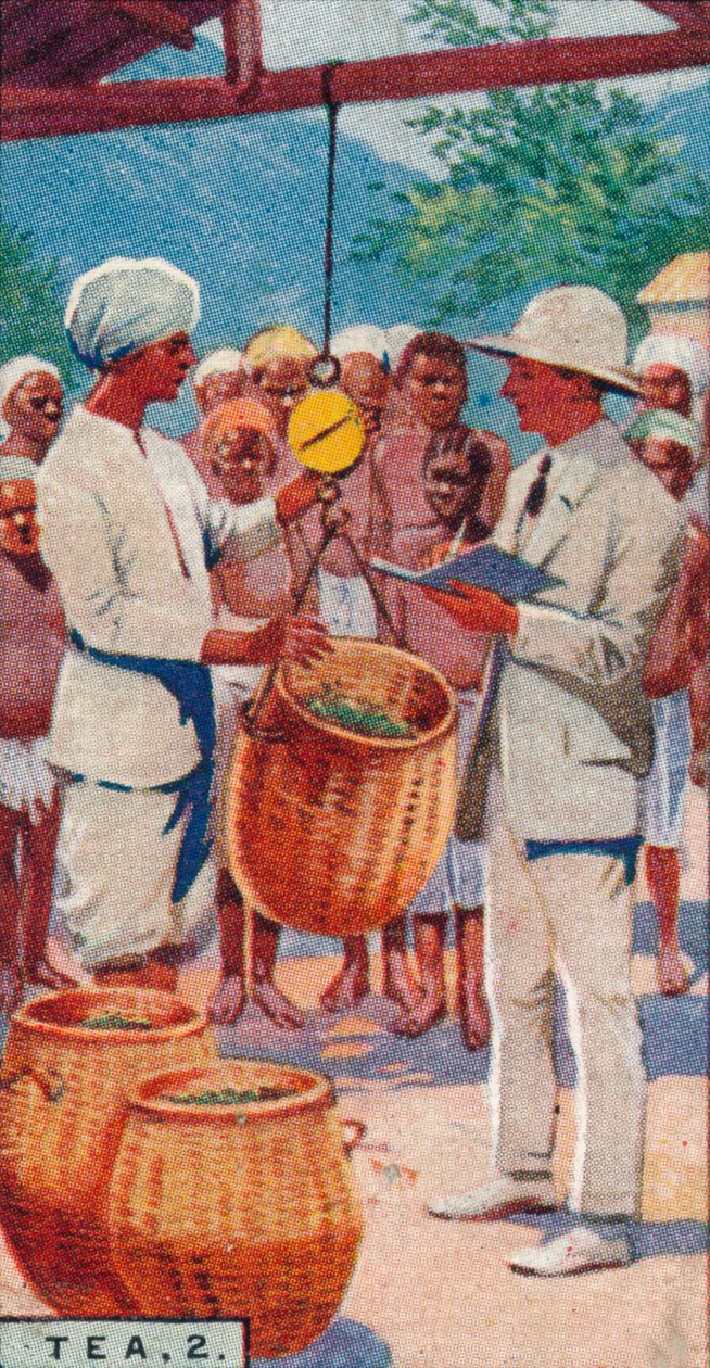 natur · landwirtschaft · leute · bewirtschaften · betrieb · handel · korb · wiegen · sri lanka · farbe · farbe · handeln · händler · plantage · text · abbildung · jahrhundert · wiegende skalen · teeplantage · zwanziger jahre · teeblätter · tee betrieb · hintergrundleute · zwanziger jahre · landarbeiter · landarbeiter · 20. jahrhundert · bargeldgetreide · unknown · cigarette card · john player sons · player · john sons · The Print Collector/Heritage Images |