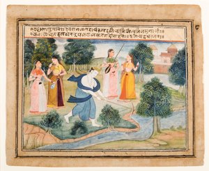 natur · fluß · portrait · baum · frau · frauen · frau · leute · mann · gruppe · mann · männer · rajasthan · indien · fromm · indisch · betrieb · betriebe · anstrich · land · religion · rahmen · grün · kerl · museum · geographie · hinduismus · position · jahrhundert · riverbank · watercolour · gestaltet · 17. jahrhundert · krishna · farbe · getroffen · metropolitanmuseum der kunst · das metropolitanmuseum der kunst · bikaner · radha · bäume · gopi · portrait · unknown · khrishna · radhika devi · bhagavata purana · heritage art · ink and opaque watercolour on paper · ink and opaque watercolour on paper · shankachura · Heritage Art/Heritage Images |
