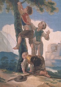 Sturz eines Baumes. Oben links die Madonna zwischen San Sebastian und San Roch. Ex voto von 1870(Fall of a tree. At the top left the Madonna between San Sebastian and San Roch. Ex voto de 1870.)Unknown artist |