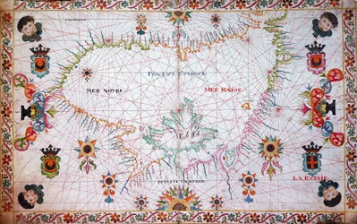17. jahrhundert · kunst · kartografie · farbe · zeichnung · geografie · manuskript · meer · schwarzes meer · atlantischer ozean · karte · mzdrawing · National Maritime Museum, London, UK / Bridgeman Images