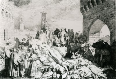 ausbruch · epidemie · epidemie · pandemie · ansteckung · krankheit · krankheit · krankheit · krankheit · medizin · medizin · gesundheit · gravur · schwarzweiß · christ · krankheit · toskana · geistlichkeit · weihrauch · gravur · christentum · göre · straßenszene · tod · gesundheit · ordensgemeinschaft · florenz · religion · straßenansicht · arzt · mittelalter · mittel · italienisch · segnung · bianchetticor · 19 · Private Collection / Bridgeman Images