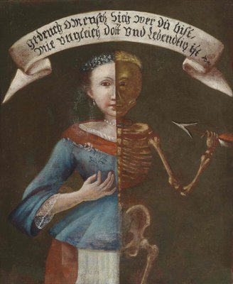 schreiben · sprache · mieder · skelett · oberschenkelknochen · berühren · nacken · hälfte · memento · Mori · lebendig