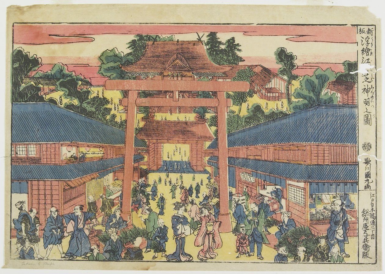 Ansicht des Shinmei-Schreins in Shiba in Edo, ca. 1820er Jahre(View of the Shinmei Shrine at Shiba in Edo, c. 1820s)Utagawa Kunimaru |