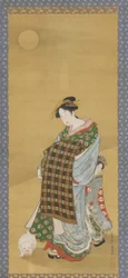 tier · frau · frauen · frau · leute · mädchen · mädchen · gehen · asiatisch · asien · ausbildung · künste · anstrich · land · unterhaltung · hund · hunde · kunst · kostüm · besetzung · kontinent · kleidung · farbe · japan · japanisch · kleid · traditionelles kostüm · kimono · geisha · unterhalter · position · jahrhundert · galerie · beruf · kleidung · begleiter · zwei leute · rolle · kunstgalerie · farbe · smithsonian anstalt · pädagogische anstalt · 18. jahrhundert · achtzehntes jahrhundert · portrait · silk · utagawa toyoharu · toyoharu · utagawa · hanging scroll · freer gallery of art · art centre · heritage art · painting · kakejiku · arthur m. sackler gallery · color and gold on silk · Heritage Art/Heritage Images