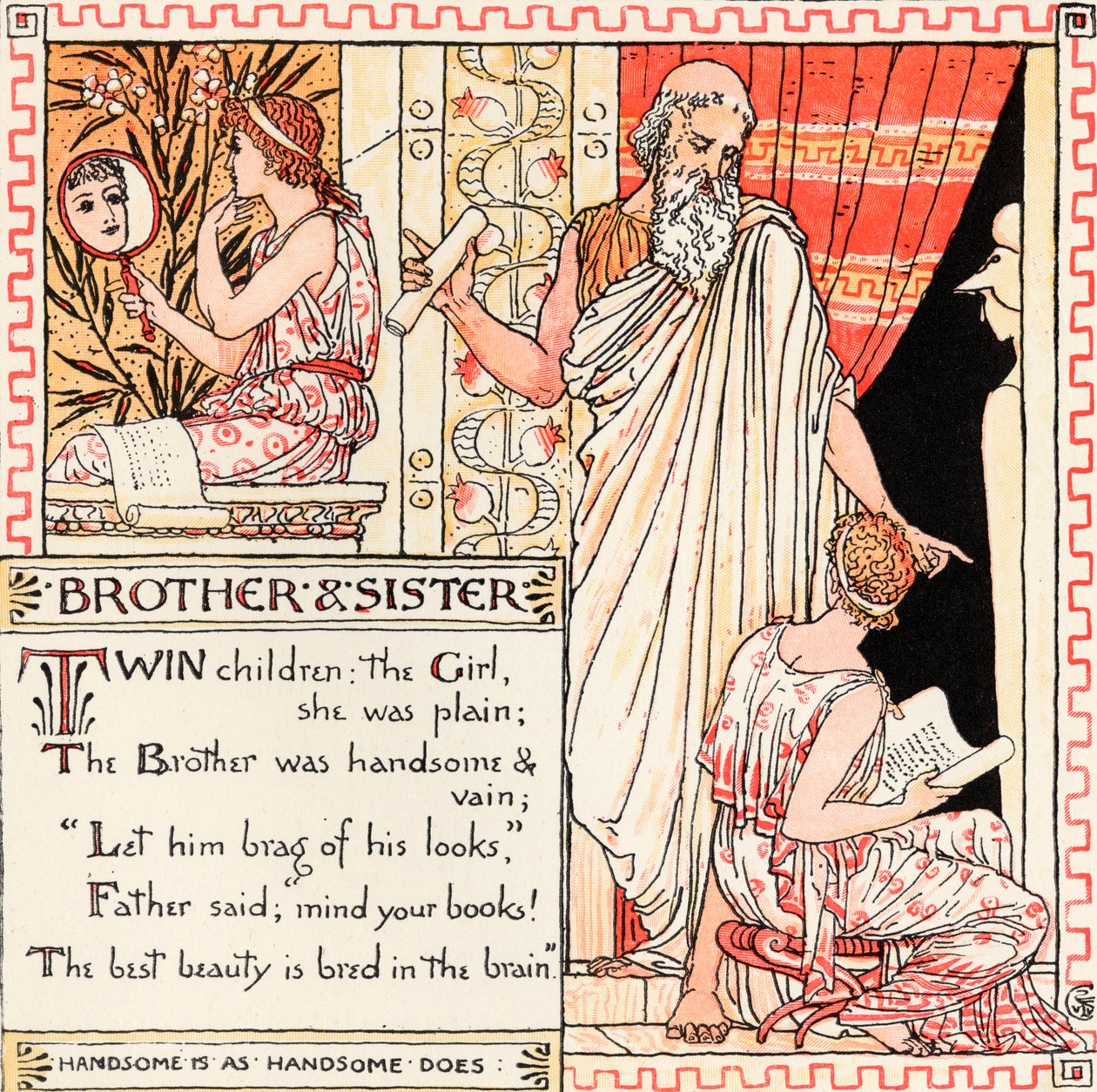 Bruder und Schwester, Illustration aus 'Baby's Own Aesop', graviert und gedruckt von Edmund Evans, London, veröffentlicht ca. 1920(Brother and Sister, illustration from 'Baby's Own Aesop', engraved and printed by Edmund Evans, London, published c.1920 )Walter Crane |