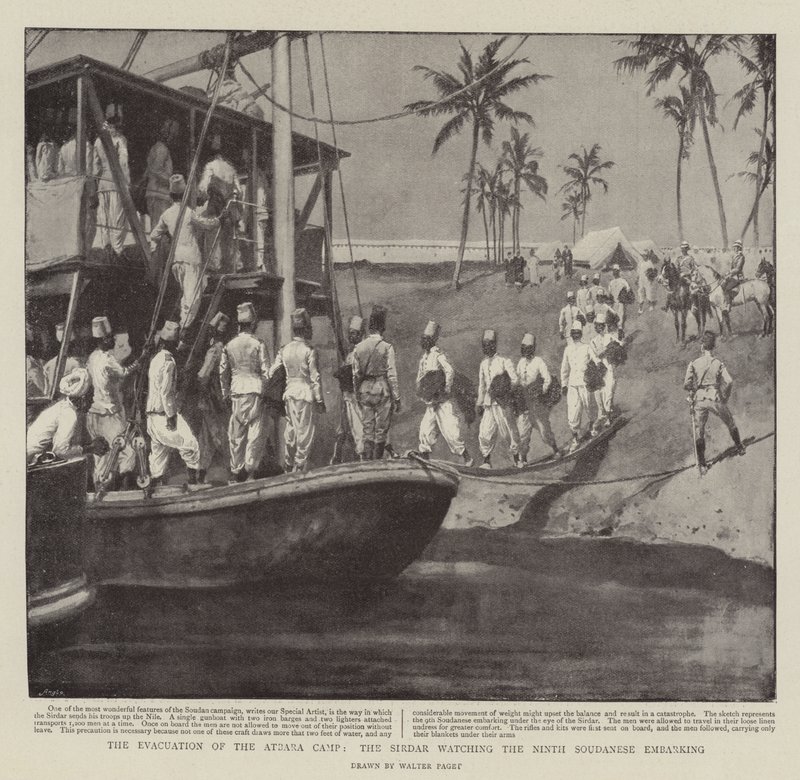 Die Evakuierung des Atbara-Lagers, der Sirdar beobachtet das Einschiffen des neunten sudanesischen Regiments(The Evacuation of the Atbara Camp, the Sirdar watching the Ninth Soudanese embarking )Walter Stanley Paget |