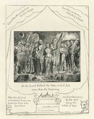 Hiob und seine Frau wiederhergestellt zum Wohlstand(Job and His Wife Restored to Prosperity, 1825. )William Blake |
