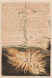 Das erste Buch Urizen, Tafel 19, "Gestreckt für ein Werk der Ewigkeit . . . ." (Bentley 20)(The First Book of Urizen, Plate 19, "Stretch'd for a work of eternity . . . ." (Bentley 20))William Blake |