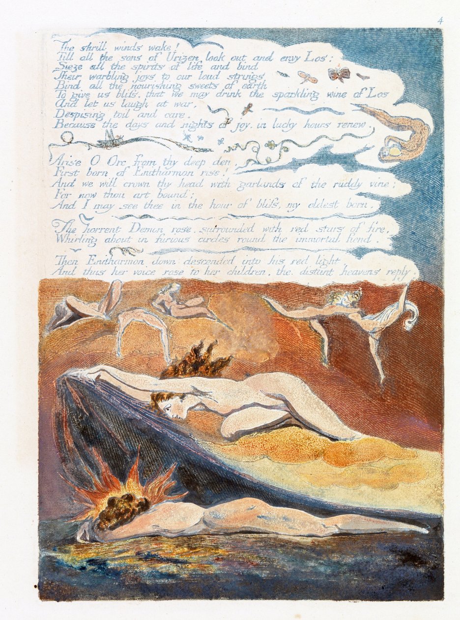 europa · prophezeiung · prophetisch · philosophie · philosophisch · mystisch · analyse · intellektuell · mythologie · mythologisch · erzählung · mehrdeutig · mehrdeutigkeit · schaffung · menschheit · buch · teller · platten · englisch · literatur · literarisch · gedicht · gedichte · poesie · poetisch · erleuchtung · romantisch · Glasgow University Library, Scotland / Bridgeman Images |