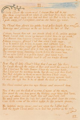 Das Buch Thel, Tafel 5, II. , O kleine Wolke . . . .(The Book of Thel, Plate 5, II. , O little Cloud . . . .)William Blake |