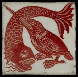 Fliese mit Eisvogel mit Schnabel durch Fisch, 1882-1888(Tile with kingfisher with beak through fish, 1882-1888)William Frend De Morgan |
