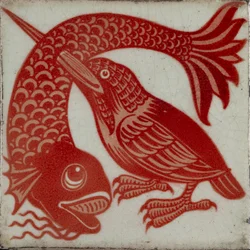 ende oben · fische · künste · vogel · vögel · weiß · kunst · britisch · farbe · farbe · schnabel · fliese · jahrhundert · großbritannien · bild · studioschuß · nahrungsmittelkette · tonwaren · nahaufnahme · kingfisher · metapher · wasserleben · 19. jahrhundert · 19.jahrhundert · object · ceramic · lustreware · alcedo ispida · ashmolean museum · arts crafts movement · william frend de morgan · morgan · william frend de · Ashmolean Museum, University of Oxford/Heritage Images