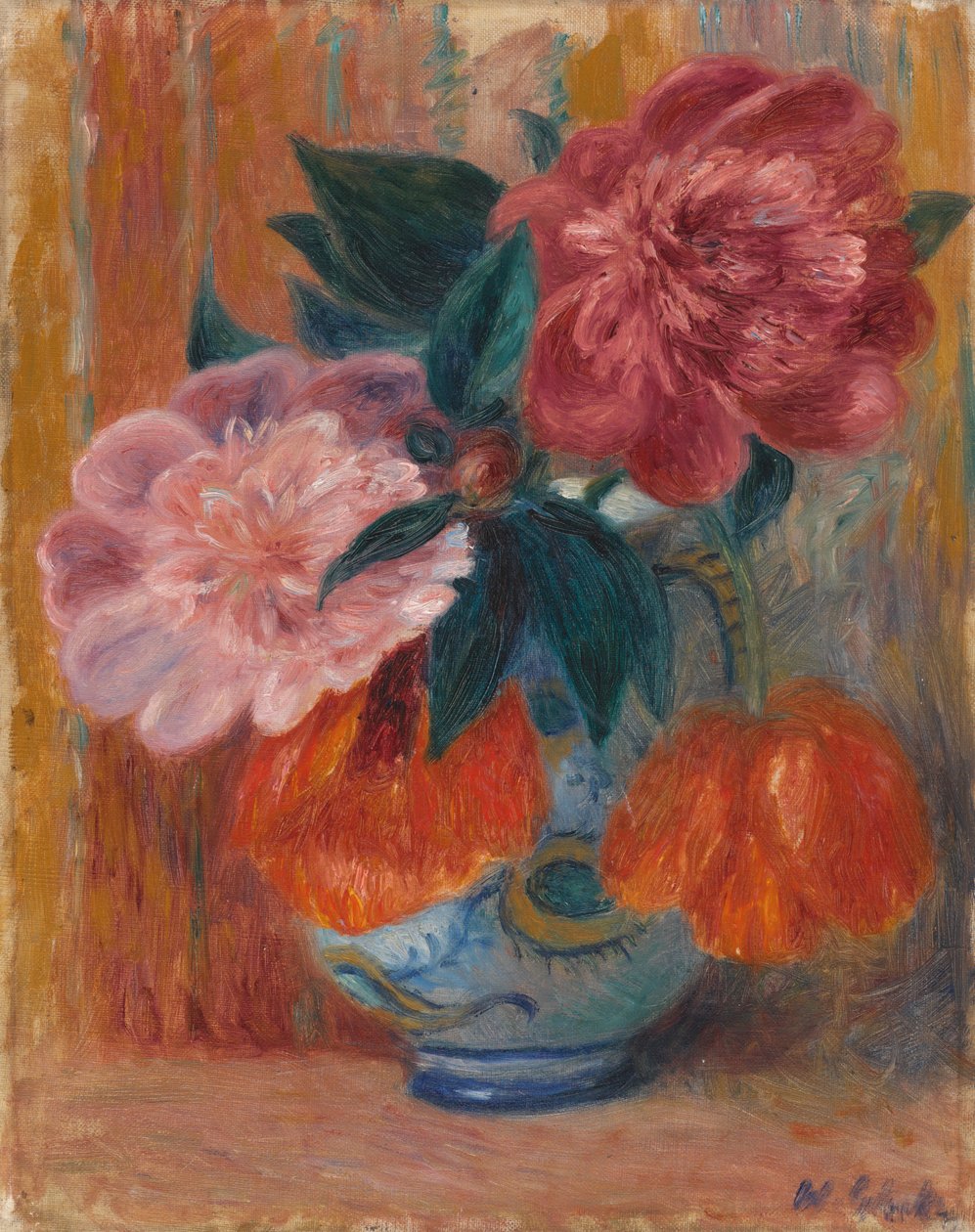 Tulpen und Pfingstrosen im Krug von William James Glackens. Verfügbar als Kunstdruck auf Leinwand, Fotopapier, Aquarellkarton, Naturpapier oder Japanpapier.