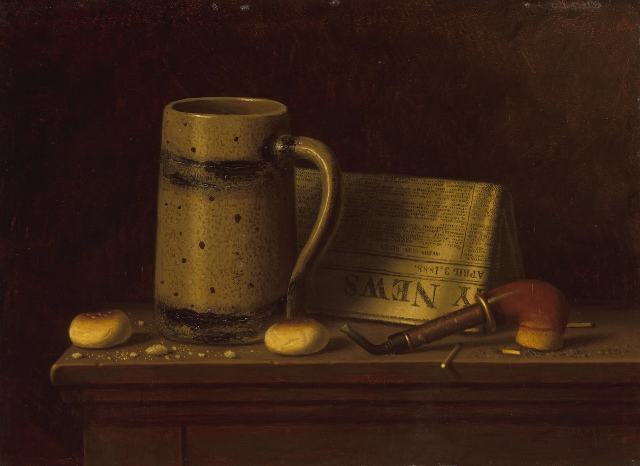 stilleben · nahrung · getränk · anstrich · rohr · land · museum · spiritus · bier · rauchen · papier · keramisch · position · jahrhundert · becher · biskuit · biskuite · zeitungen · presse · tankard · öl anstrich · vereinigte staaten von ameri · farbe · getroffen · metropolitanmuseum der kunst · das metropolitanmuseum der kunst · bierbecher · 19. jahrhundert · tabakrohr · 19.jahrhundert · amerikanisch · brot · amerika · still life · oil on wood · oil on wood · meerschaum · heritage art · william michael harnett · harnett · william michael · new york daily news · Heritage Art/Heritage Images |
