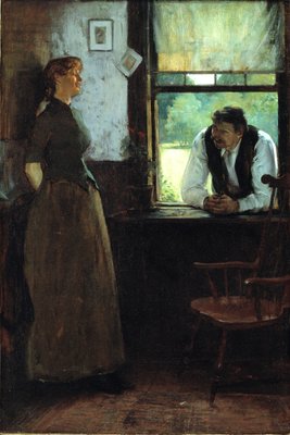 frau · frauen · frau · leute · mann · innen · mann · männer · ausbildung · anstrich · licht · land · fenster · kerl · farbe · umwerbung · umwerben · position · victorian · jahrhundert · sprechen · gespräch · nach innen · flirten · konzept · unterhalten · liebelei · öl anstrich · vereinigte staaten von ameri · farbe · smithsonian anstalt · 19. jahrhundert · zuhause · pädagogische anstalt · 19.jahrhundert · amerikanisch · amerika · william thomas smedley · smedley · william thomas · heritage art · painting · smithsonian american art museum · oil on canvas · Heritage Art/Heritage Images