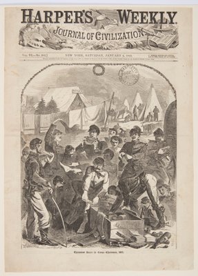 Weihnachtsboxen im Lager, aus Harper(Christmas Boxes in Camp, from Harper)Winslow Homer |