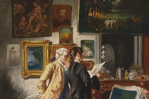 Suchen Sie nach Künstlern, Werktiteln oder Stilen – z.B. Monet, Sternennacht, Impressionismus, Welle Hokusai, Akt. Beschreiben Sie die Szene – z.B. Grüne Wiese, Abstrakt mit viel Rot, Dunkles Ölgemälde, Stehender Akt neben einem Baum.